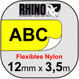 Нейлоновая эластичная лента для неровных поверхностей и кабелей. Эластичная, не рвущаяся при протяжке кабелей, 12 мм x 3.5 м. Шрифт: черный,Лента: желтая. Для принтеров серии RHINO: RhinoPRO 5000, RhinoPRO 5200, RhinoPRO 6000, Rhino 4200.